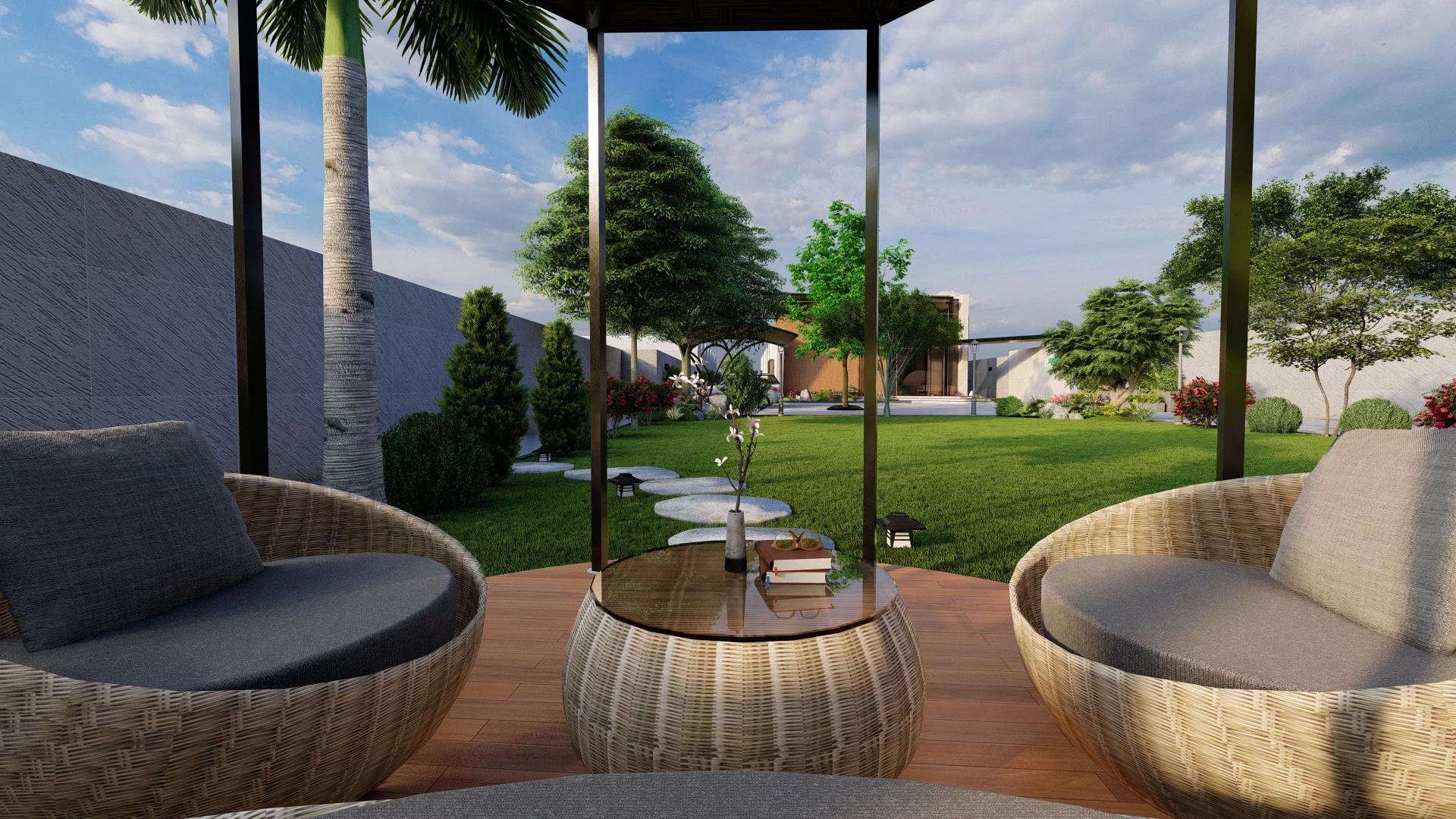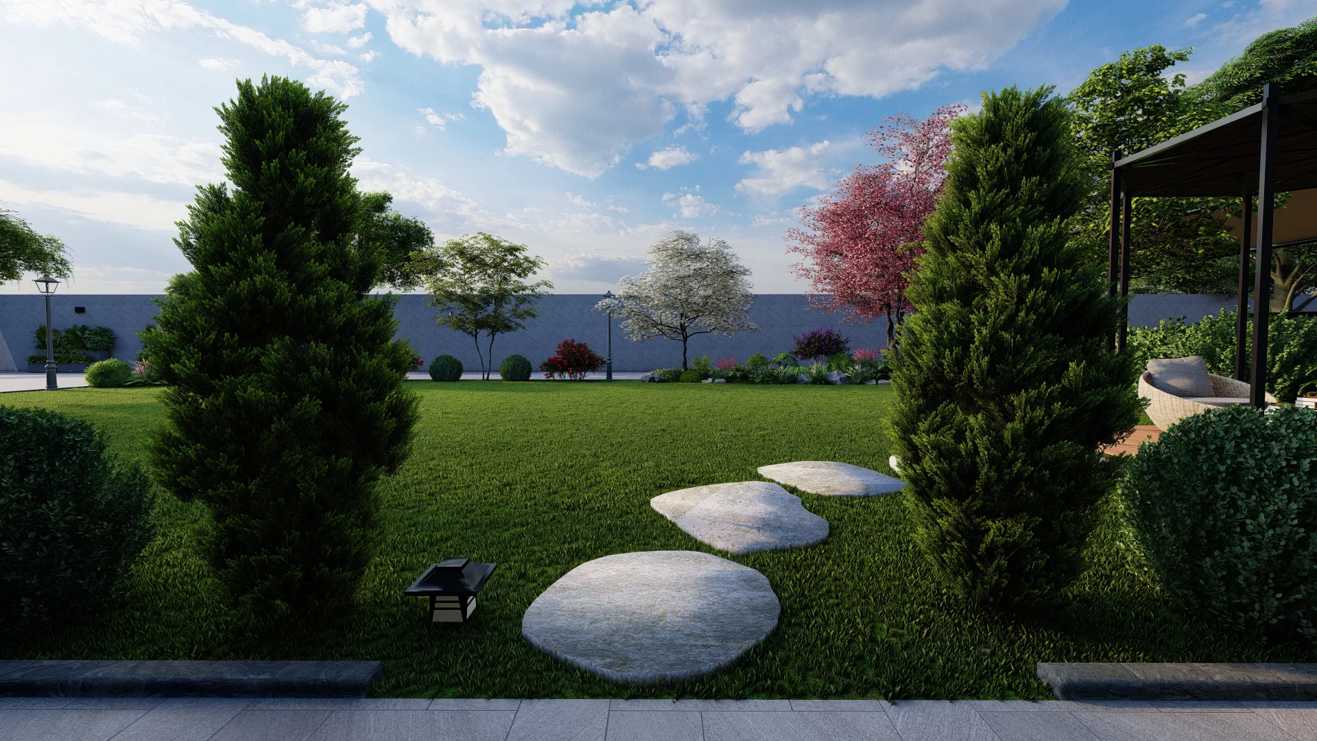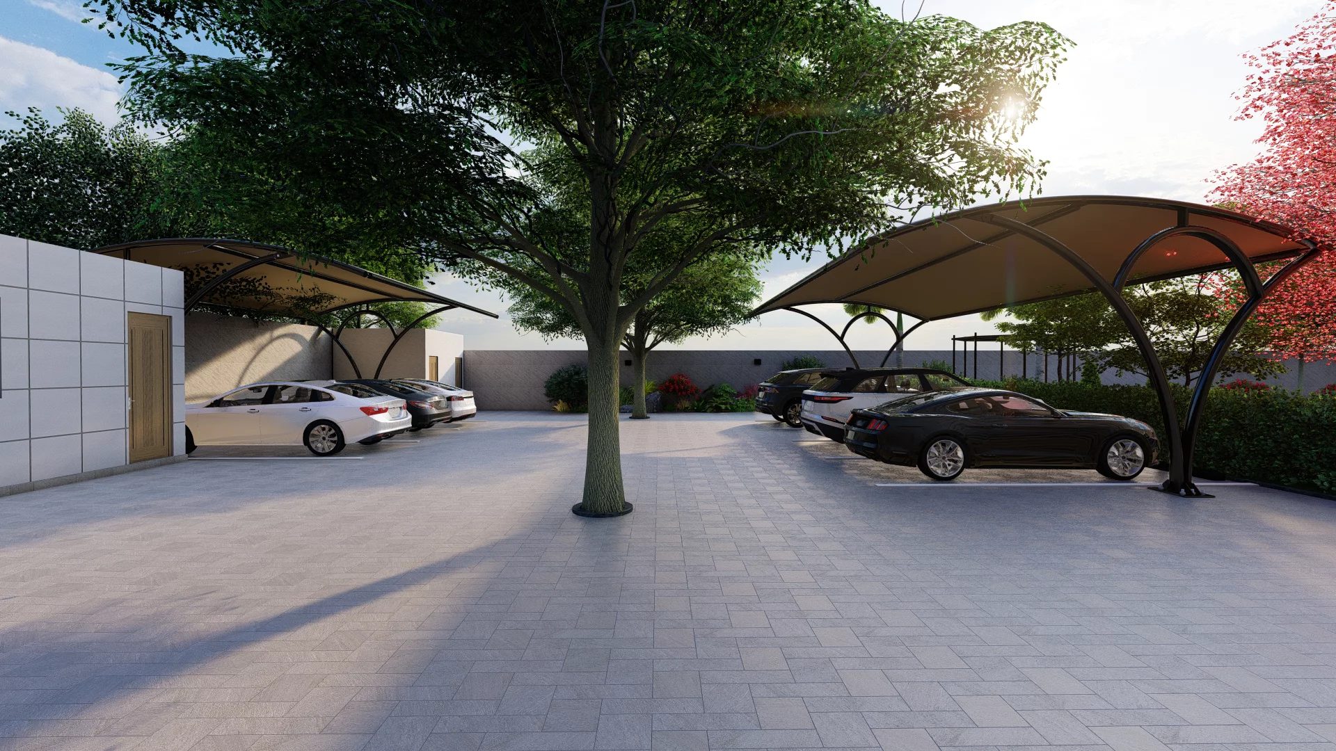 Enhance your business space with expert commercial landscaping by Greenscapers. This office lawn design features a well-planned front yard and backyard, lush plantation, a spacious lawn, organized parking areas, and a beautifully designed side alley. The backyard seating area offers a relaxing outdoor retreat, blending aesthetics with functionality. Elevate your office exterior with professional landscape design services that create a welcoming and sustainable environment.