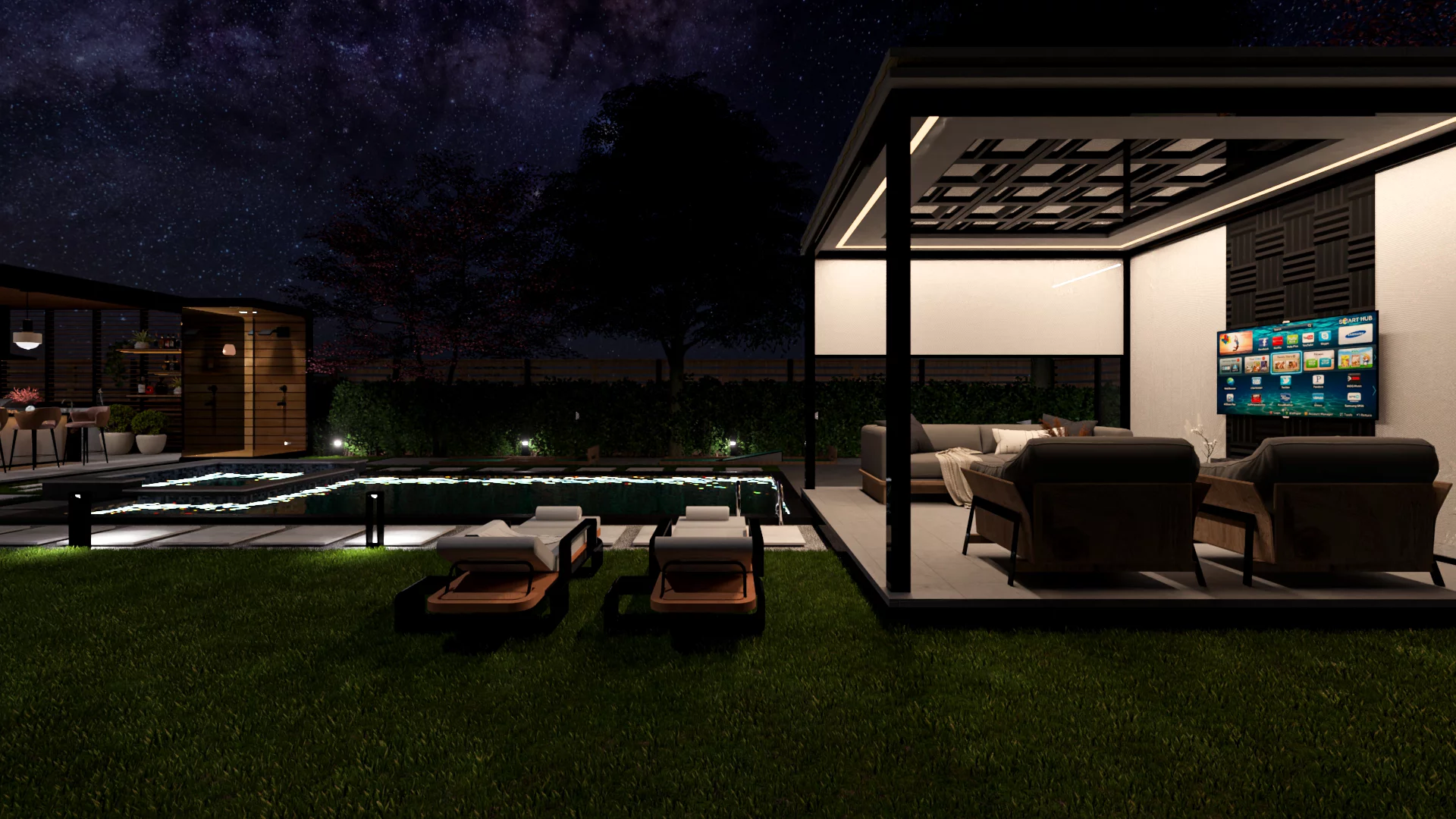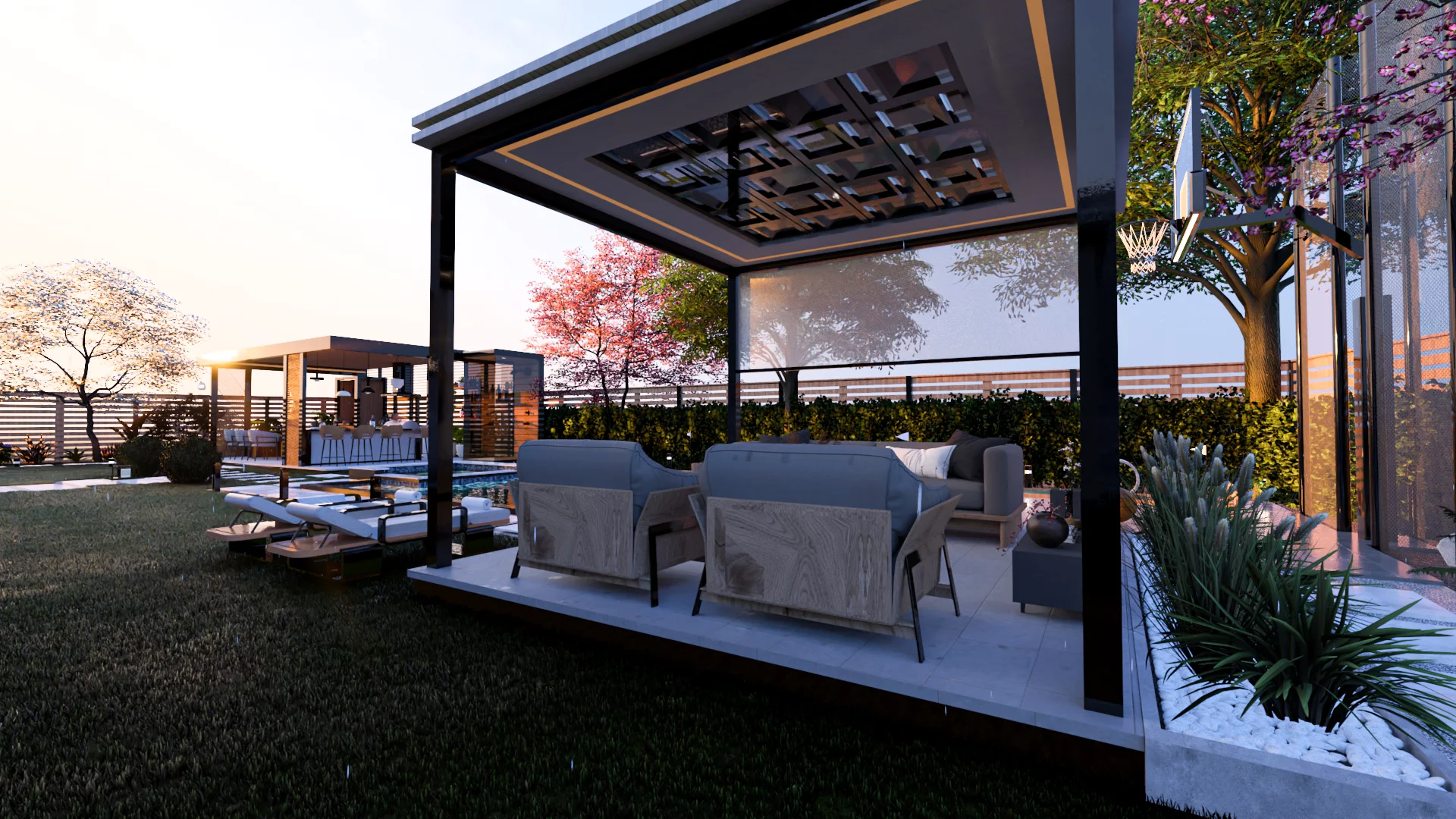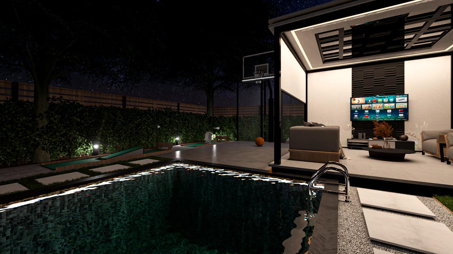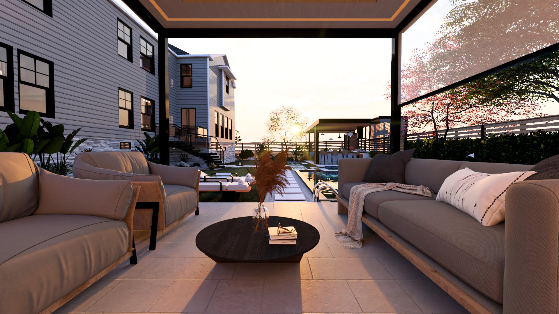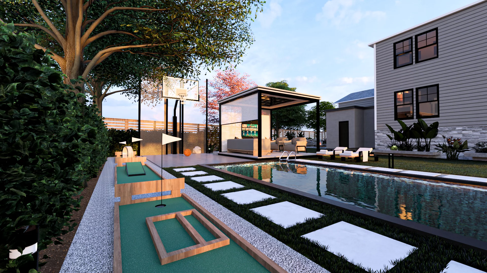 Discover a stunning landscape designed by Greenscapers in Maryland, USA, featuring a serene water body, luxurious pool, cozy seating spaces, and an elegant fireplace. This beautifully crafted outdoor retreat blends nature with modern aesthetics, creating the perfect space for relaxation and entertainment. Experience expert landscaping at its finest!